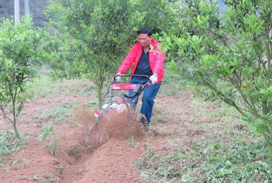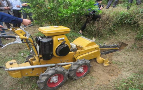 手扶自走式开沟机作业演示