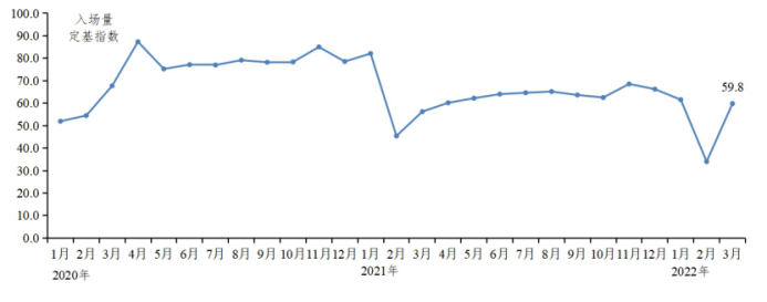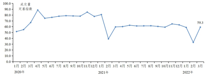 受春节假期和新冠肺炎疫情反复影响,大米批发市场成交量下降。据省农业信息监测体系数据,第一季度批发市场大米入场量环比下降32.8%,同比下降30.8%,成交量环比下降32.8%,同比下降30.8%。2月大米入场量和成交量定基指数均跌至近两年最低点,分别为34、33.1。