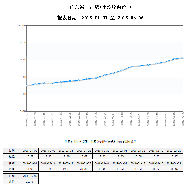 广东省屠宰生猪及肉品价格周报(2016年第19周)