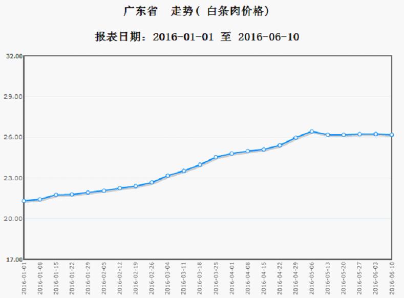 广东省屠宰生猪及肉品价格周报(2016年第24周)
