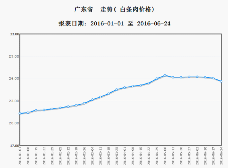 广东省屠宰生猪及肉品价格周报(2016年第26周)