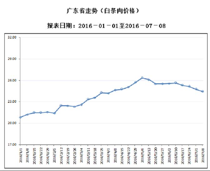 广东省屠宰生猪及肉品价格周报(2016年第28周)