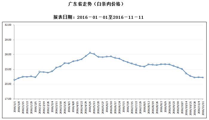 广东省屠宰生猪及肉品价格周报(2016年第46周)