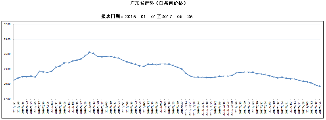 广东省屠宰生猪及肉品价格周报(2017年第21周)