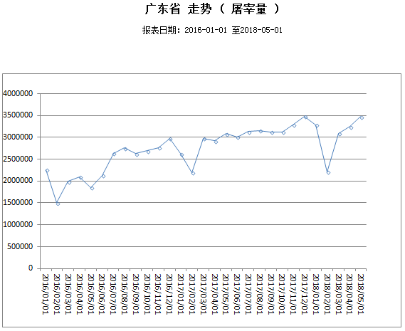 5月份广东省屠宰生猪及肉品供应情况(屠宰生猪及肉品价格2018年5月报)
