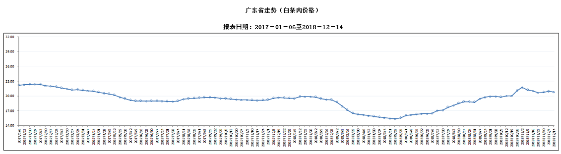 据对全省53家规模以上生猪定点屠宰样本企业监测统计,2018年12月8-14日,生猪平均收购价格为16.54元/公斤,较前一周下降0.72%,较去年同期上涨4.22%。本周较上周环比降幅较大的地区有揭阳市2.79%,梅州市1.97%,清远市1.72%,但有5个市呈上涨态势,其中深圳涨幅超过2%。