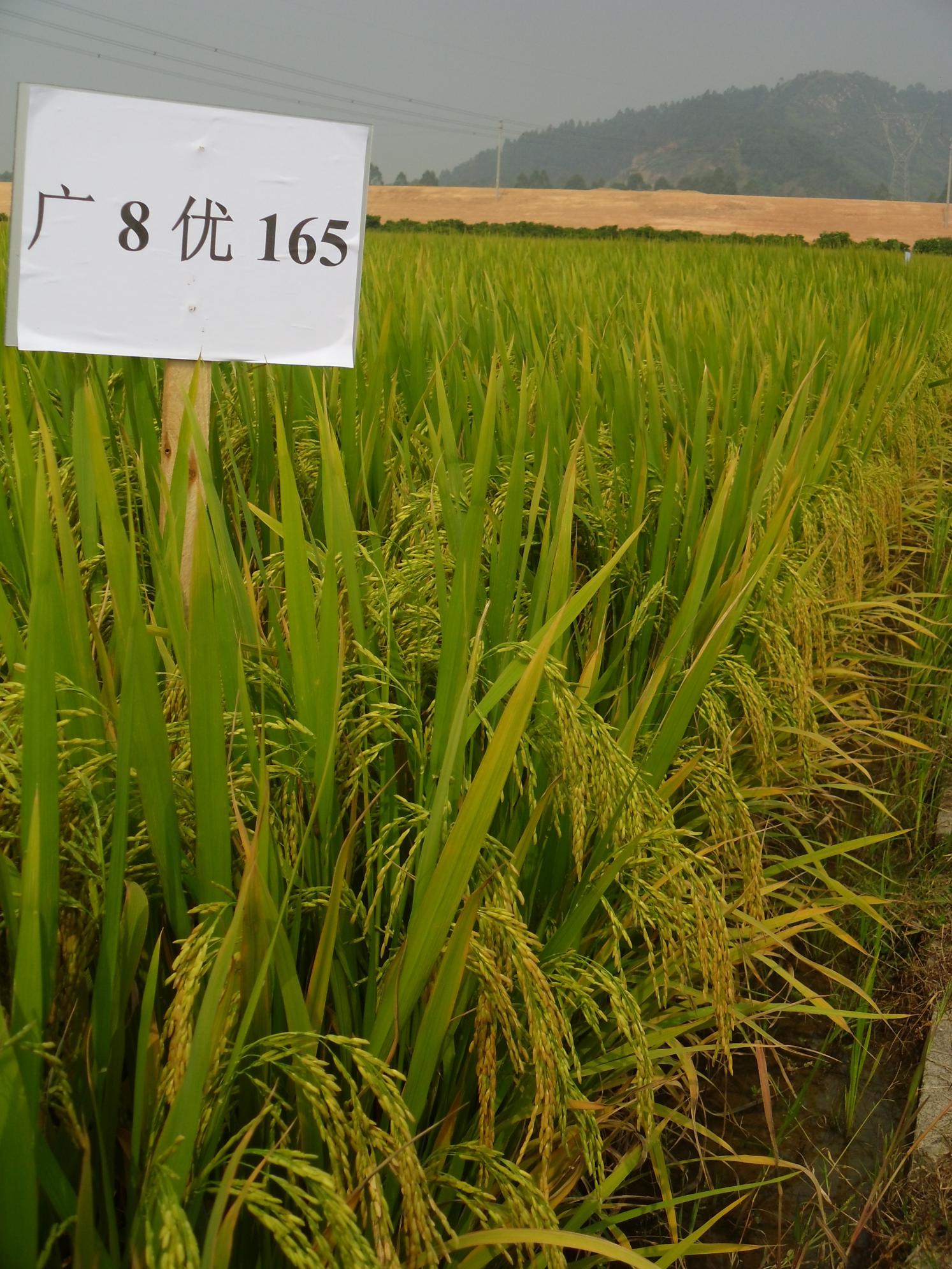 1.生育期:在广东省晚造区试中,广8优165平均全生育期为119-120天,比对照组合博优998迟熟3天,与博III优273相当。