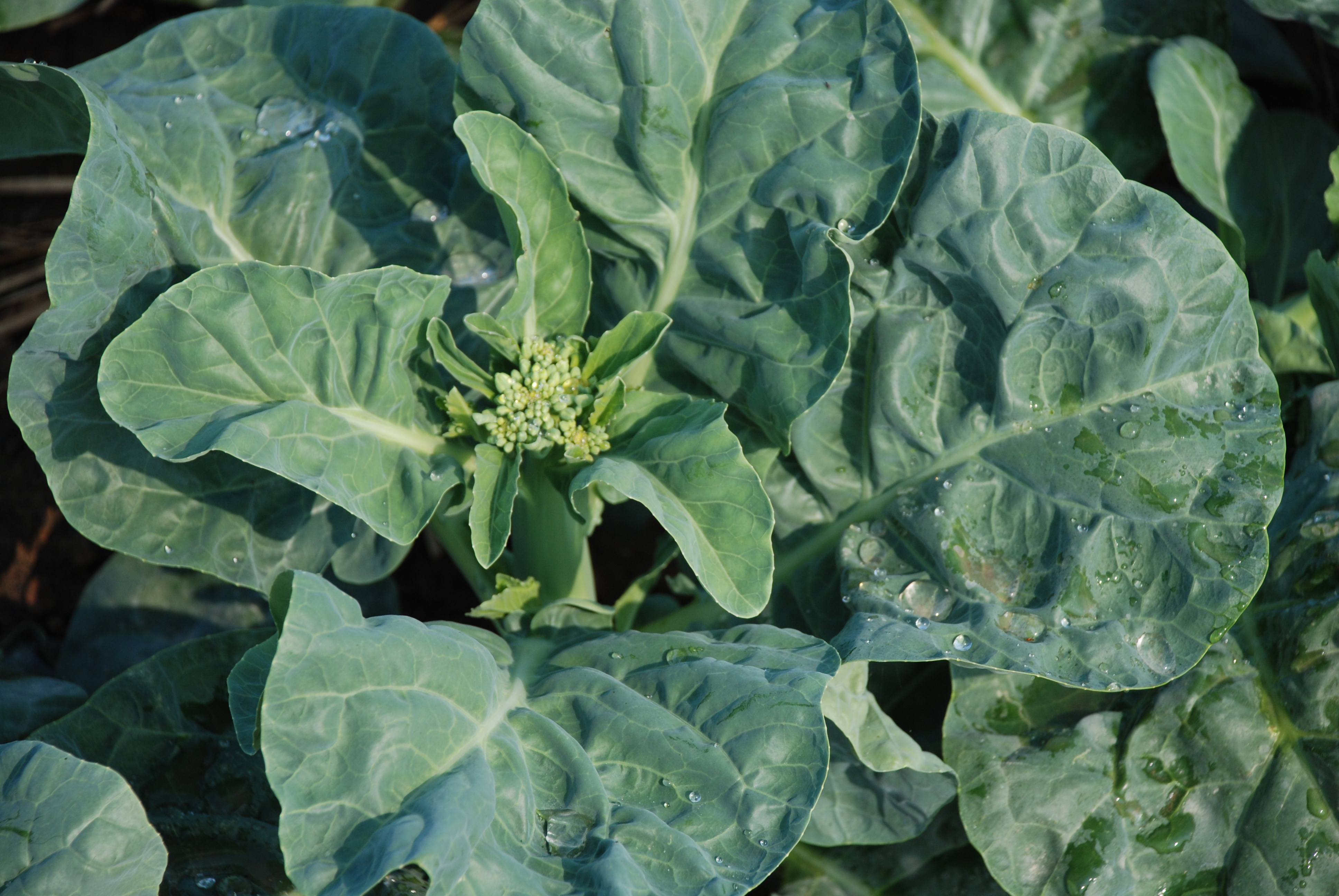 栽培要点 广州地区适播期为8-11月下旬,其它地区可参考广州气候调整播种期。宜选择土质肥沃,保水力强,前作不是十字花科作物的壤土栽植。一般采用穴盘基质育苗,1穴1株。苗龄20~25 d可以移栽。苗期应注意控制光照和水分,防止幼苗徒长。定植时均匀施腐熟有机肥22 500 kghm-2,复合肥150 kghm-2,定植成活后追肥2~3次,前期主要追复合肥或少量氮肥,可以结合浇水施复合肥150~225 kghm-2。栽培密度为17 cm×20 cm。整个生育期注意防治黄曲条跳甲、小菜蛾和菜粉蝶,同时注意炭疽病、霜霉病、软腐病的防治。芥蓝出现“齐口花”时采收,以保证产品质量。