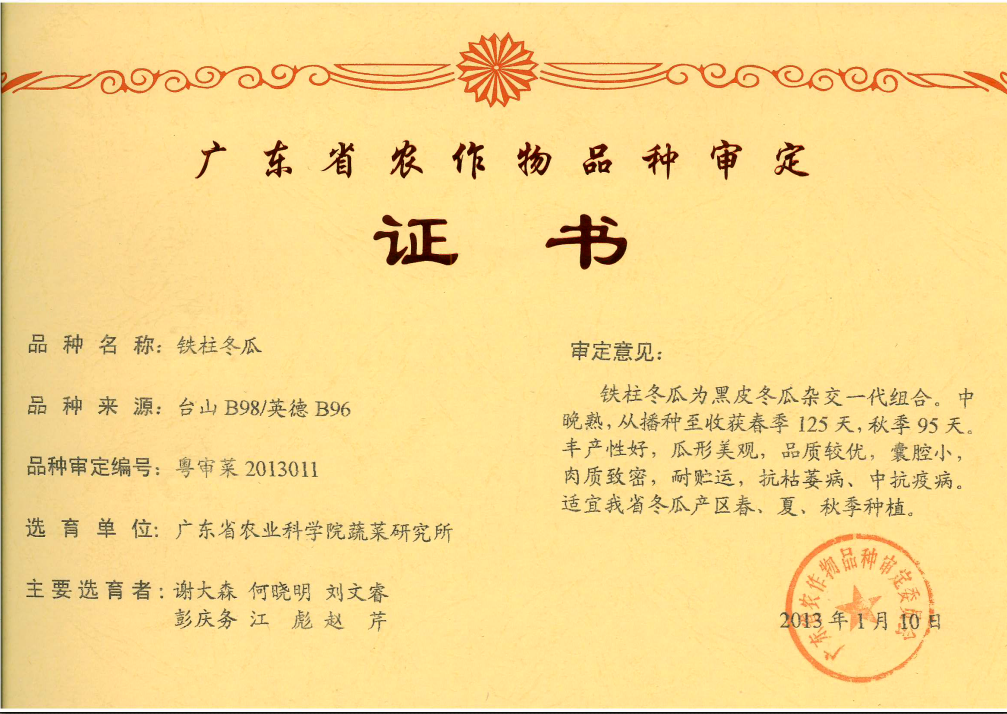 审定编号 粤审菜2013011