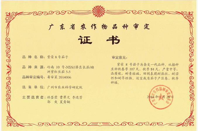 审定编号 粤审菜2014006