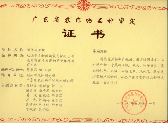 审定编号 粤审果2010010
