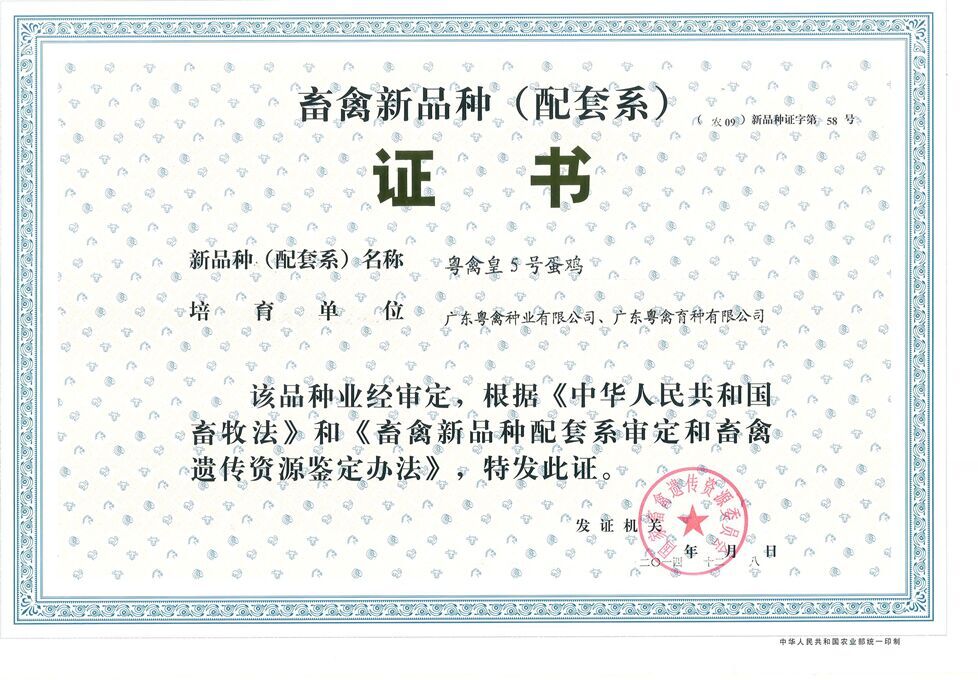 品种所有人:广东粤禽种业有限公司广东粤禽育种有限公司