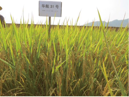 特征特性:“华航31号”属早晚兼用型籼稻品种,在广东省早造平均全生育期约125~130天左右,晚造平均全生育期110~111天,比粳籼89早熟2天;株高109.5~110.6厘米,株型中集,分蘖力中等,叶色中,叶姿中,长势繁茂,抽穗整齐,耐寒性强,抗倒性强,后期熟色好。穗长24.3~24.9厘米,亩有效穗18.2~18.6万,每穗总粒数132.1~132.5粒,结实率83.5%~85.8%,千粒重22.0~22.3克。稻瘟病抗性鉴定为抗至高抗;中感白叶枯病(5级);米质达国标优质2级、省标优质2级,整精米率72.5%。该品种抗寒性模拟鉴定孕穗期为强、开花期为中强,耐寒性鉴定为强。区试平均亩产430公斤左右。