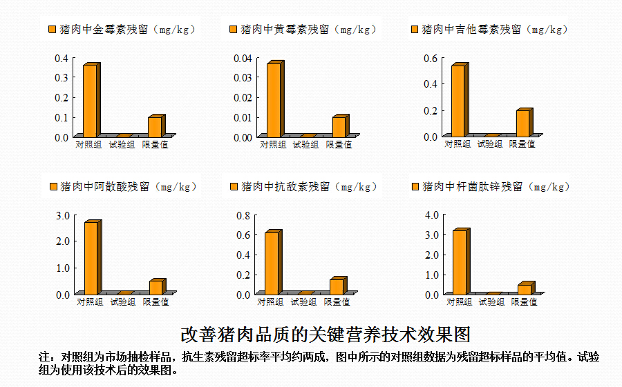近三年应用面积和增产增效情况:该技术已在全国10多个省、市及地区近60家饲料生产企业和养猪场推广应用,累计用于生产安全、健康的猪预混料约20万吨、全价配合饲料约350万吨,用于饲养商品肉猪约2400万头,实现社会经济效益达到2亿元。
