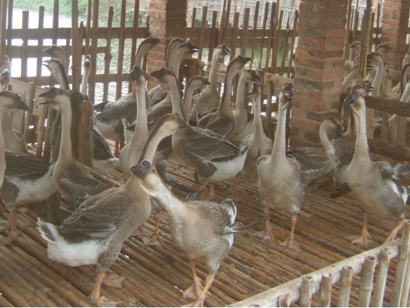 技术概述:狮头鹅是我国最大型肉用鹅,其具有体型大,生长发育快,能大量利用青粗饲料等特点。而且饲料中 的主要营养(代谢能及粗蛋白质)40-50%可来自青粗多汁饲料和放牧。狮头鹅由于体型大,对饲养管理技术要求高。其育雏期、后备期、种鹅期饲养及种蛋电机孵化均有其特殊性,需经专业技术人员的指导、培训下农民饲养户才能掌握。狮头鹅饲养管理技术由狮头鹅提纯复壮技术、饲料营养调控及配制技术、种蛋电机孵化技术、肉鹅和种鹅饲养标准以及疫病防控技术等组成,涵盖了狮头鹅饲养管理过程中的各个环节,是一套可操作性强、适用性广的实用技术。经过我所培训的饲养户,其狮头鹅品质比其他饲养户有较大的提高,料肉比由原来的3.2:1降低到2.7:1,降低了15.6%;商品代肉鹅体重由原来的5.6公斤提高到6.2公斤,提高10.7%。仅以澄海区为例,目前饲养种鹅50万只,通过我所技术培训,饲养肉鹅880万只,每年可增加8800万元以上的社会利润;在全国范围内,则每年可增加经济效益12000万元以上,经济效益和社会效益十分明显。