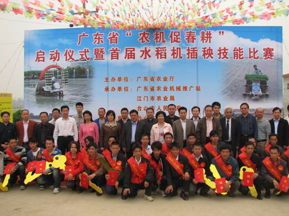 阳春三月,南粤大地生机盎然。3月18日,广东省“农机促春耕”启动仪式暨首届水稻机插秧技能比赛颁奖仪式在省产粮大县、省农业机械化示范基地——台山市隆重举行。这次活动是在我省启动春耕的关键时期举办,吹响了我省“农机促春耕”的号角。沉睡了一冬的土地,在铁牛的轰隆声中正不断地换上绿妆,期待着金秋收获的喜悦。