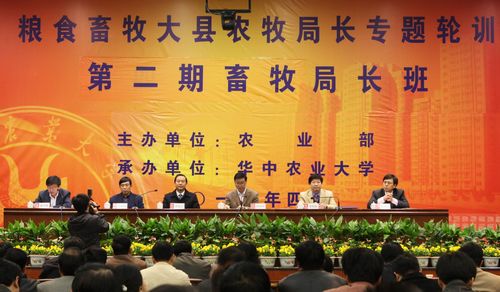 农业部管理干部学院党委书记、院长魏百刚主持开班式并讲话,湖北省农业厅、华中农业大学有关负责同志出席开班式并致辞。来自湖北、湖南、江西、上海等10省(市)的112名县畜牧局长参加培训。