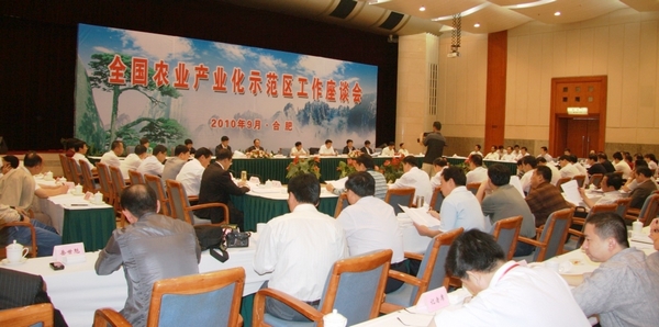 9月24-25日,农业部在安徽合肥召开全国农业产业化示范区工作座谈会。会议围绕贯彻落实今年中央1号文件关于“建立农业产业化示范区”的要求,交流各地建立农业产业化示范区的做法和经验,研讨推进农业产业化示范区建设的总体思路和目标任务,为全面推进农业产业化示范区建设做好准备。农业部副部长陈晓华出席会议并作讲话,强调稳步推进农业产业化示范区建设,推动龙头企业集群发展,进一步提升农业产业化发展质量和水平。