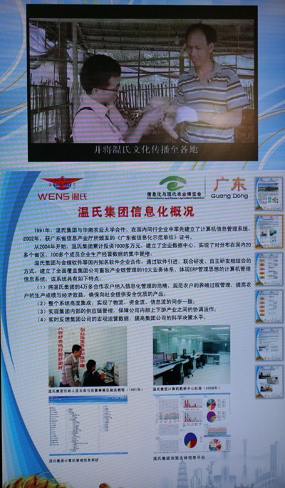 本网讯 在昨日闭幕的“2010信息化与现代农业博览会”上,广东温氏食品有限公司选送的ERP项目荣获优秀案例二等奖。
