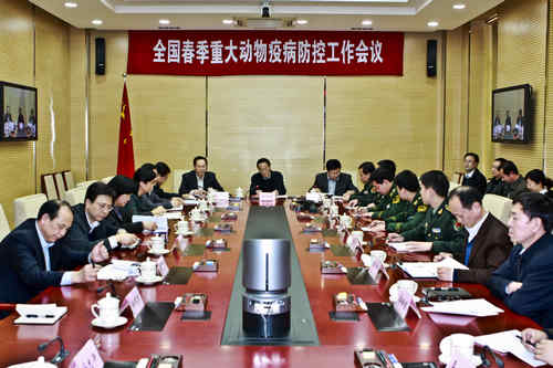 3月4日,农业部召开全国春季重大动物疫病防控工作视频会议,深入分析了当前禽流感、口蹄疫、高致病性猪蓝耳病等重大动物疫病防控形势,对春季重大动物疫病防控工作进行了全面部署。农业部副部长高鸿宾强调,要进一步加大防控工作力度,狠抓关键措施落实,努力确保不发生区域性重大动物疫情。