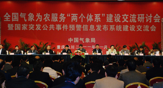 重庆市建立气象为农服务“两个体系”的发展长效机制。特别是创建了县级突发公共事件预警信息发布平台建设的“永川模式”,实现了单一灾种向综合防灾减灾的转变,实现了防灾减灾向风险管理的改变,走出农村气象为农防灾减灾发展新路。郑国光认为,“永川模式”为“两个体系”赋予了新的内容,值得大力推广。