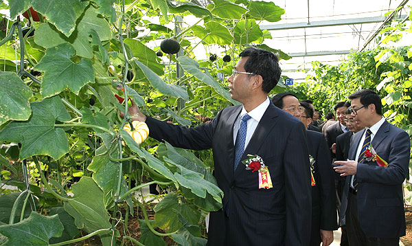 副省长刘昆(前)察看广东种业博览会田地品种展示区。
