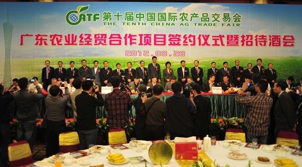 9月27日,由农业部主办、国家有关部委协办的第十届中国国际农产品交易会在北京市隆重开幕。广东省副省长刘昆率省、市有关领导和56家参展单位赴京参会。在本届农交会上,广东展团积极组织采购商、供货商参展农交会,达成一系列贸易成交合作项目,经贸成交总额141.8亿元,比第上届农交会增加了47亿元。