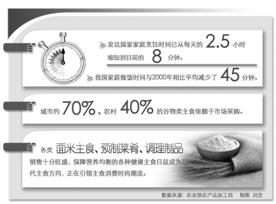 由农业部农产品加工局主持、中国农业大学食品与营养工程学院具体承担和组织实施的“我国居民家庭主食消费状况”调查显示,我国居民家庭正越来越依赖主食的工业化生产和社会化供应。