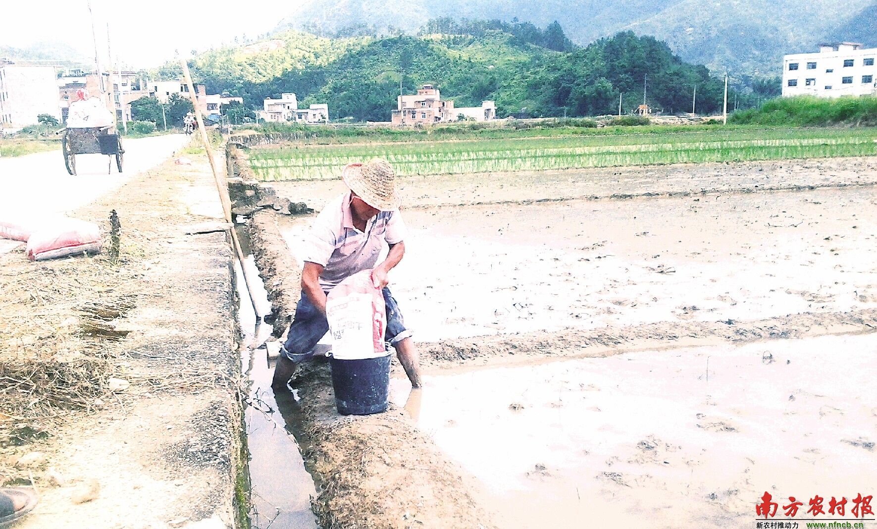 使用土壤调理剂能有效提高土壤pH值和作物产量。图为陆河县布金村村民在使用土壤调理剂。