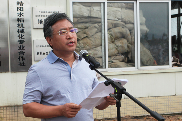 2015年7月23日,广东省农业厅在江门市新会区举办全省水稻育插秧机械化现场会。省政协常委、经济委主任谢悦新出席了现场会,省农业厅副厅长牛宝俊在现场会上讲话,省农业厅总农艺师陆国煌主持了现场会。省农业厅、华南农业大学、省农科院、全省各地级以上市农业局领导,40个产粮大县农业局局长、县农机局局长、部分种粮大户代表,江门市各县(区)农业、农机部门的负责同志、农机专业合作组织成员以及种粮大户等共300多人参加了现场会活动。