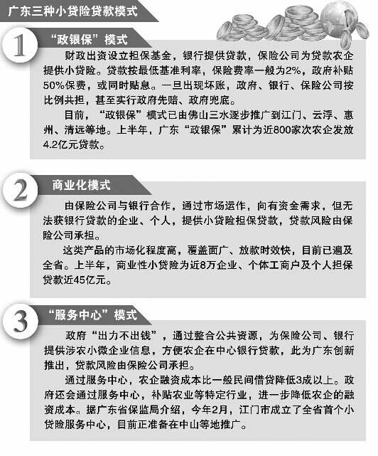 目前,广东已探索形成了“政银保”、商业化运作和“服务中心”三种主要的小贷险业务模式。