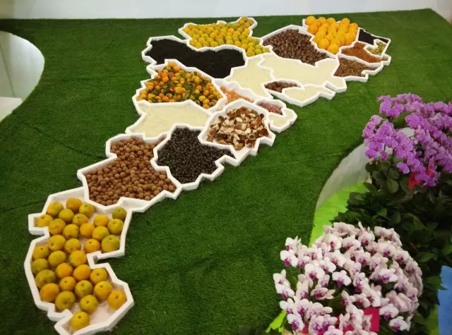 哇!这不是广东地图吗?将岭南名优特产按生产地排列展示,让观展群众一目了然,太有创意了!