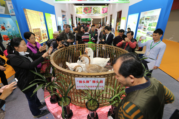 这届农博会最大的亮点:无处不体现“互联网+现代农业”的概念。除了专门设置了农业互联网信息化工程、农业电商等展区外,展销区也处处体现“互联网+”的元素。现场参展观众踊跃用手机参与现场互动,就连老年人也争着扫起了“二唯码”。