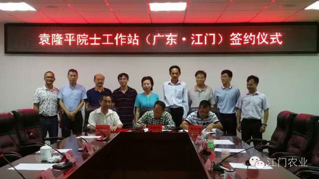 这标志着,袁隆平院士在广东建立的首个院士工作站落户江门。省农业厅副厅长程萍、市政府党组成员容福华见证了这一重要时刻。袁隆平院士表示,“要在新会三江种出亩产1500公斤(两造)的世界最高产‘超级水稻’。”