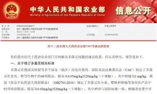 关于减少多菌灵在我国的使用