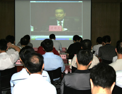 图为与会人员在收看学习中央农村工作领导小组办公室主任陈锡文报告录像。