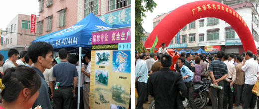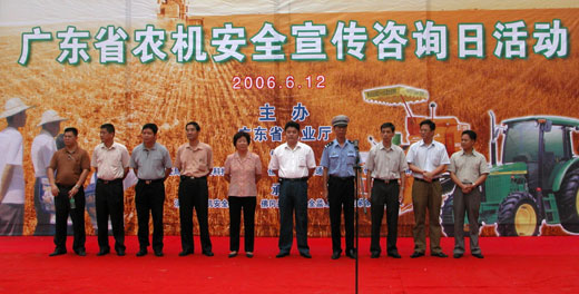 为配合“全省农机安全生产月”活动的开展,落实省预防道路交通事故联席会议精神,宣传农机管理法律法规和安全知识,提高广大农民和机手的守法意识和安全意识,预防、减少农机安全事故和道路交通事故,确保农机安全生产,促进社会主义新农村建设,广东省农业厅联合当地市、县农业部门、农机安全监督管理机构、公安交警部门和镇政府,于6月12日上午,在清远市佛冈县汤塘镇举办大型“农机安全宣传咨询日”活动。