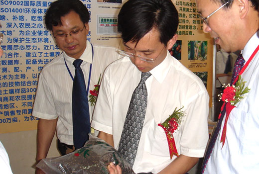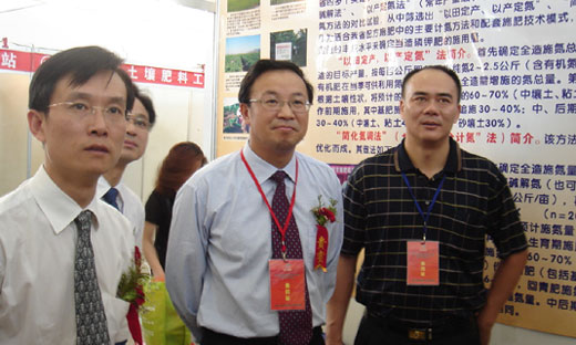 7月12—13日,在内蒙古呼和浩特市召开的第八届全国肥料信息交流暨产品交易会上,由广东省土壤肥料总站组织参展的广东省测土配方施肥成就展——“广东:测土配方施肥为农民增收添砖加瓦”深受广大参观者的欢迎。农业部种植业管理司胡元坤副司长、全国农业技术推广服务中心潘显政书记和栗铁申副主任等领导亲临我省展位,顿足良久,听取我省测土配方施肥专家组组长张育灿研究员的汇报,对我省谢悦新厅长、蔡汉雄副厅长等厅领导重视测土配方施肥工作的情况大加赞赏,并对我省采用控释肥作为水稻配方肥的效果和做法给予肯定,有关领导对我省测土配方施肥工作给予这么高的评价,这是对我省今后进一步搞好测土配方施肥工作的极大鼓舞和鞭策。