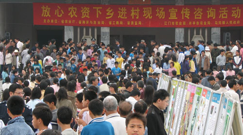 3月8日,正值开平市马冈镇的墟日,省农业厅、省海洋与渔业局、省工商局、省质监局、江门市农业局、开平市农业局和马冈镇政府联合举办“放心农资下乡进村现场宣传咨询活动”。这是继3月7日省、市、县农业部门开展农资市场质量监督例行执法检查后,我厅在“放心农资下乡进村宣传周活动”的又一项重要内容,也是我们省、市、镇各有关部门落实科学发展观,开展“三个走在前面”实践,争当我省社会主义新农村建设排头兵的一次具体行动。现场宣传咨询活动围绕“放心农资下乡,维护农民权益”的主题,以送农业新科技、送农资识假辨假知识、送农资监管法律法规、送放心农资下乡进村为重点,组织有关执法和专业技术人员,现场介绍识别真假农资的常识和讲解科学使用农资的知识,宣传名优农资企业和产品,提高农民维权意识和自我保护的能力,并现场接受消费者对有关假冒伪劣农资投诉,还举办了“放心农资下乡进村幸运抽奖”。