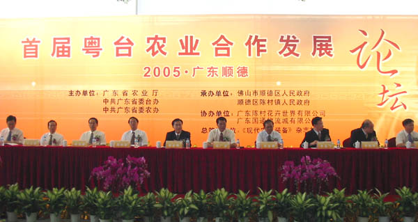 由广东省农业厅、省委台办、省委农办共同主办,佛山市顺德区政府、顺德区陈村镇政府共同承办的“首届粤台农业合作发展论坛”于8月9日在广东顺德陈村花卉世界举行。