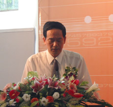 论坛开幕式由农业厅厅长谢悦新(右)主持,省委副书记欧广源(中)、副省长李容根(左)在开幕式上致辞