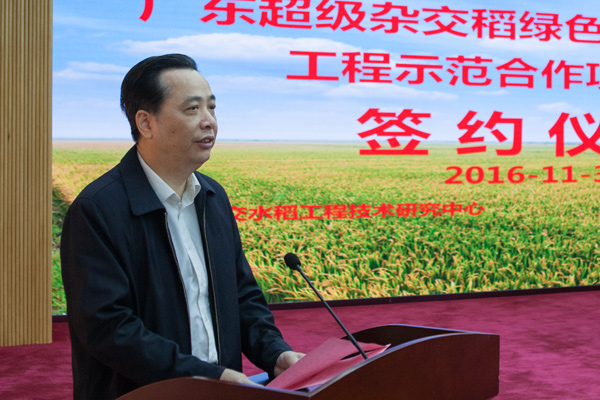 郑伟仪厅长在致辞中指出,我省正处于决胜率先全面建成小康社会的关键时期,推进农业供给侧结构性改革,促进粮食产业增产增效、农民持续稳定增收任务艰巨、意义重大。广东的粮食产业转型升级得到了袁隆平院士和国家杂交水稻工程技术研究中心的大力支持和帮助,今后将进一步紧密携手,深化超级杂交稻协作攻关、创新发展,努力扩大成果,再创佳绩。