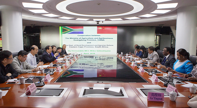 4月9日上午,省农业厅陈东副厅长会见了到访的南非东开普省副省长柯博夏尼先生一行。陈东副厅长对柯博夏尼先生一行的到来表示热烈欢迎,介绍了广东省农业发展概况并回顾了与南非开展农业合作的情况。柯博夏尼先生简要介绍了南非东开普省的基本情况、政策优势、优势产业和农业贸易等,提出了双方合作的潜在机遇。陈东副厅长建议从推动双方开展贸易合作,打造一批广东与东开普省的特色名牌农产品,鼓励两省农业科研机构、院校及科技企业在种业、农机、食品加工等领域开展专项合作,搭建两省农业合作载体与平台,建立两省长效交流沟通机制等五个方面积极推进农业交流合作。双方就共建共享共谋发展达成了共识。