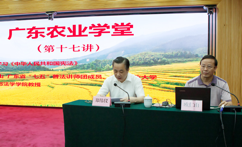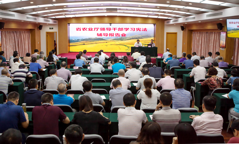 5月17日上午,省农业厅举办领导干部法治专题培训班,邀请广东省“七五”普法讲师团成员、华南农业大学人文与法学学院欧仁山教授对学习《中华人民共和国宪法》作专题辅导报告。辅导报告会由郑伟仪同志主持,厅领导、厅机关全体公务员、事业单位班子成员参加了辅导报告会。