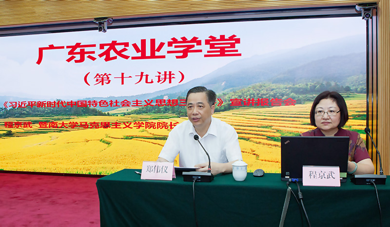 8月1日,省农业厅举办学习《习近平新时代中国特色社会主义思想三十讲》宣讲报告会,邀请省委宣讲团成员、暨南大学马克思主义学院院长程京武教授作报告,厅党组书记、厅长郑伟仪主持报告会,厅领导、机关全体公务员、事业单位领导班子成员及支部委员参加。