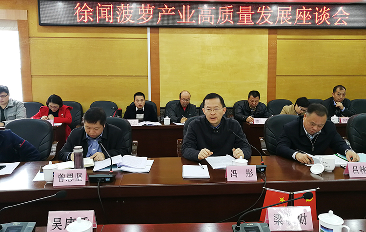 冯彤副厅长一行深入地方和农垦系统生产基地、项目实施现场,调研红江橙黄龙病防控和徐闻菠萝产业发展情况。在廉江市和徐闻县分别召开了红江橙黄龙病防控工作协调会和徐闻菠萝产业高质量发展座谈会,冯彤副厅长要求要深化垦地合作,强化责任、突出重点、示范带动推进红江橙黄龙病防控,确保廉江红橙特色优势产业安全;强调要认真贯彻落实马兴瑞省长、叶贞琴副省长关于徐闻菠萝产业发展的批示要求,抓住优良品种、产品质量、流通加工、融合发展等关键,加强舆论宣传引导,加快项目实施进度,推进菠萝产业高质量发展,有效破解菠萝滞销的难题。在广东省甘蔗生产全程机械化推广现场会,冯彤副厅长指出要增强信心,强化政策引导、机艺融合技术支撑、主体培育,提高甘蔗生产全程机械化水平。