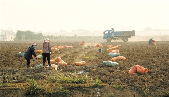 春回大地,正是春耕好时机。近日,在江门市新会区会城街道西盛村一片田地里,村民们忙着把有机肥(鸡粪)洒在土地上,为春耕生产打下良好基础。