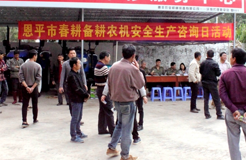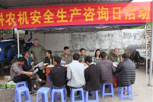 当前,正值春耕备耕之际,为确保春季农业生产顺利开展,全力抓好农机春耕备耕的安全生产,预防和减少农机事故的发生,消除安全隐患,3月1日上午,江门恩平市农业局在恩平市圣堂镇325国道边举办“恩平市2018年春耕备耕安全生产咨询日”活动,恩平市农业局相关领导、恩平市农业局农机化办负责人及恩平市农机安全监督管理站全体监理人员参加了活动。