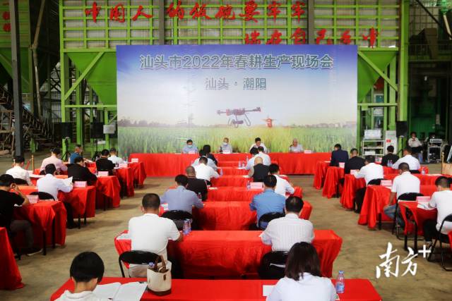 2022年春耕生产现场推进会在汕头潮阳区省级丝苗米现代农业产业园顺杰全产业链科技示范中心举行。 南方+ 张伟炜 拍摄