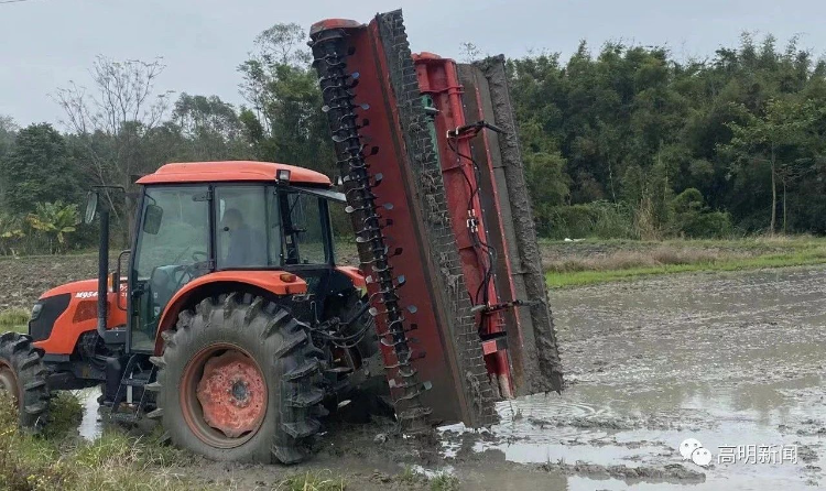 佛山市明丽农业总经理梁庆斌说:“我们提前把所有机器测试,迎接春耕。这是按照我们的农艺要求优化设计出来的机器,最大特点是可以用100马力的拖拉机带动,是我们自主开发,第三方代工加工出来的农业机器。”